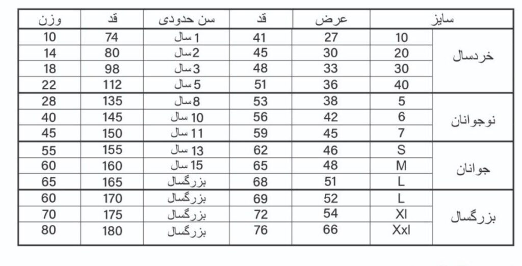 | سایز | L, XL, XXL, سایزM |
